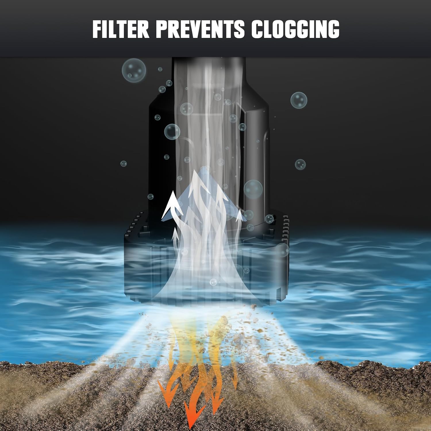 Incluye filtro de sedimentos extraíble para evitar obstrucciones y una carcasa protectora para la batería, pensada para ambientes húmedos. Es perfecta para mantenimiento de piscinas, vaciado de recipientes, manejo de agua de lluvia o emergencias domésticas.