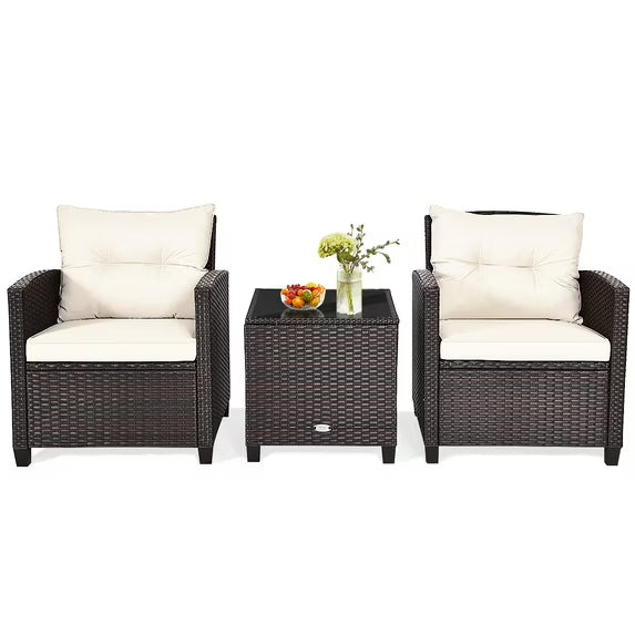 Este set es una excelente adición para ambientar espacios al aire libre con un look moderno y relajado, ofreciendo muebles funcionales que invitan al descanso o la conversación.