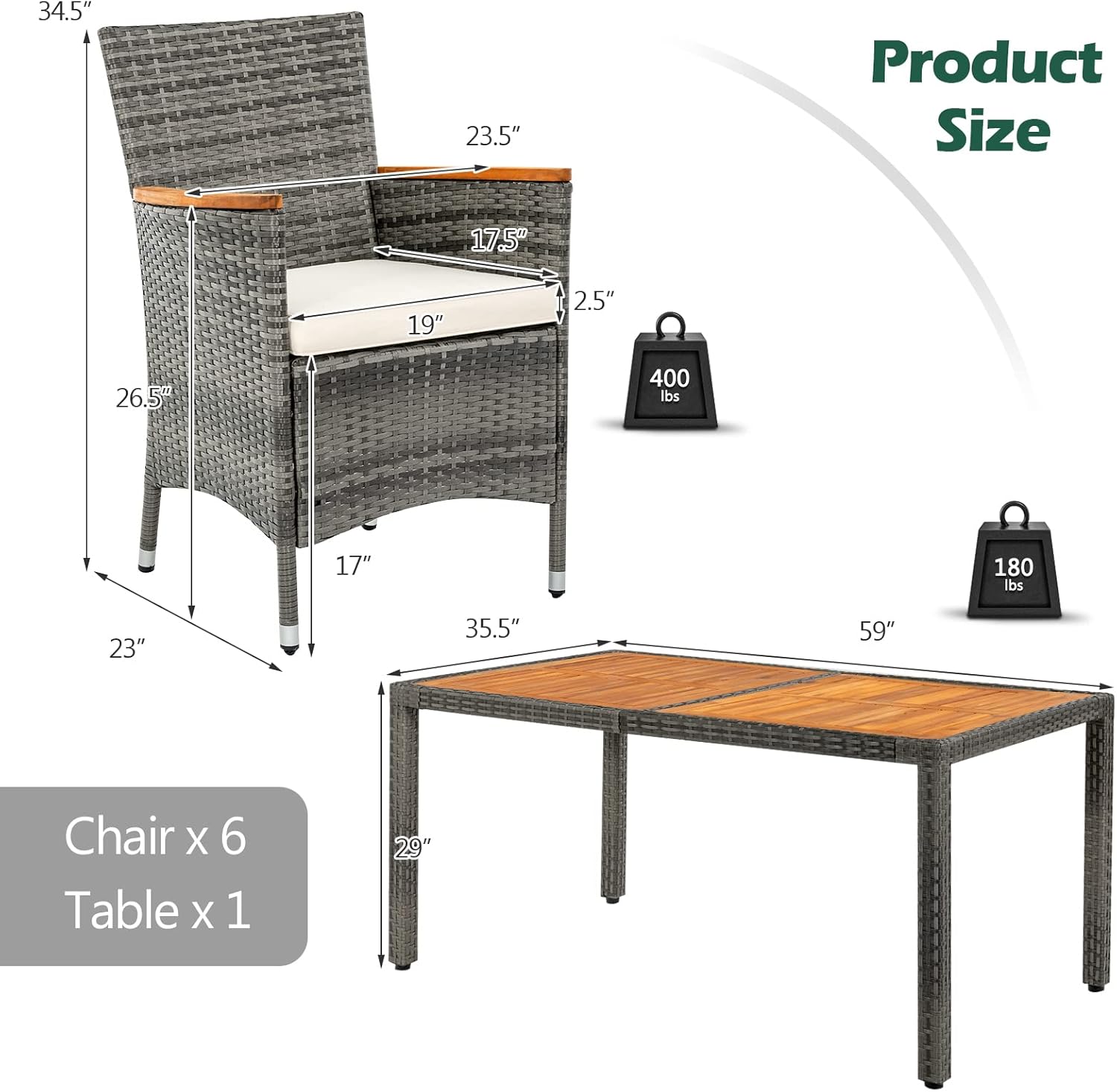 Capacidad de carga: hasta ~181 kg por silla (≈ 400 lb)
