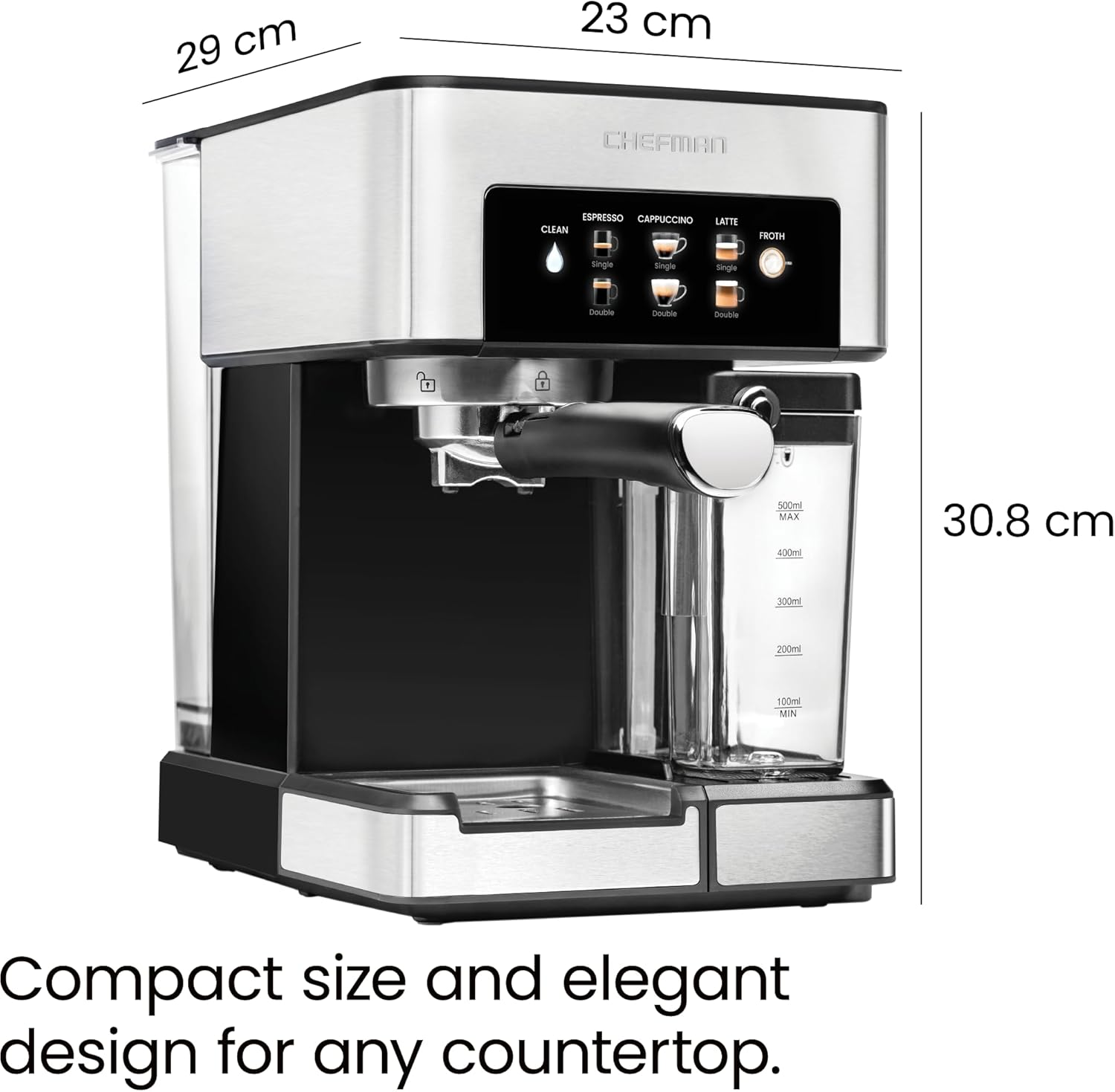 Máquina de Espresso Chefman – Cappuccino & Latte, Bomba 15 BAR, Accesorios Apta Lavavajillas