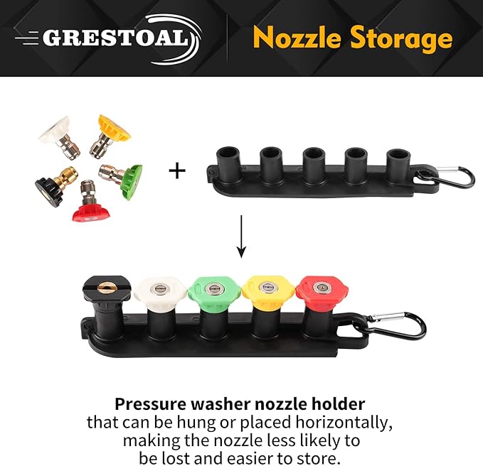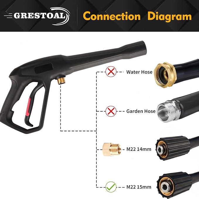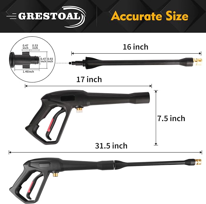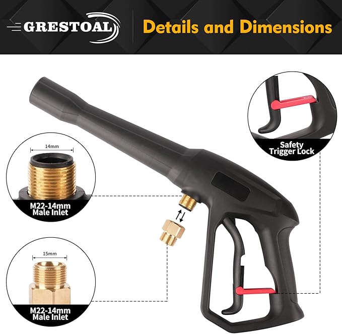 Equipa tu hidrolavadora con esta pistola de lavado a presión con varilla de extensión y juego de 5 boquillas intercambiables. Es una solución práctica y versátil para limpieza de exteriores, vehículos, pisos, paredes y superficies difíciles. Compatible con varios modelos de Karcher, Ryobi, Greenworks y Powerstroke, ofrece un rendimiento potente y adaptable a múltiples tareas.