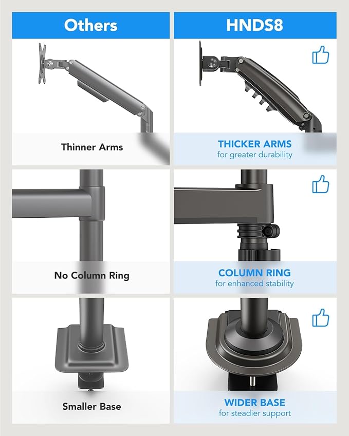 El soporte dual para monitores Huanuo HNDS8 es la solución ideal para mejorar tu postura y optimizar tu espacio de trabajo. Compatible con pantallas de 13″ a 32″ y con capacidad de hasta 19,8 lb por brazo, ofrece estabilidad, ergonomía y total libertad de ajuste.
